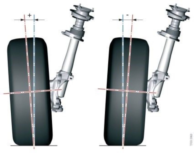 Einfache Darstellung von Positiven und Negativen Radsturz. Links: Positiv – Rechts: Negativ
